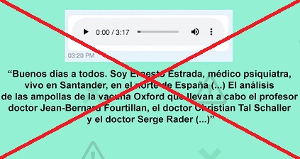 มีคลิปเสียงอ้างข้อมูลเท็จที่เผยแพร่ทางสื่อสังคมออนไลน์ในประเทศสเปนโดย เออร์เนสโต เอสตราด้า สมาชิกจากกลุ่ม Doctors for the truth ที่มีแนวคิดต่อต้านวัคซีน โดยอ้างอิงงานวิจัยของกลุ่มนักวิทยาศาสตร์ชาวฝรั่งเศสที่พบว่าวัคซีนโควิด 19 ของ AstraZeneca มีสารพันธุกรรมของไวรัส HIV-1 ต้นเหตุของการเกิดโรคเอดส์เป็นส่วนประกอบของวัคซีน