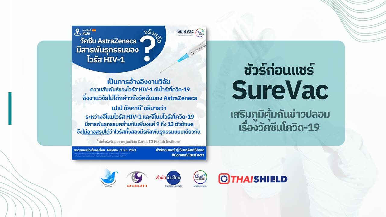 - เป็นการอ้างอิงงานวิจัยความสัมพันธ์ของไวรัส HIV-1 กับไวรัสโควิด 19 ไม่เกี่ยวกับวัคซีนโควิด 19