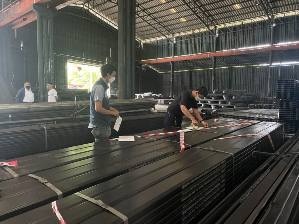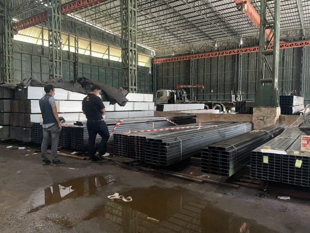 นายวันชัย พนมชัย เลขาธิการสำนักงานมาตรฐานผลิตภัณฑ์อุตสาหกรรม เปิดเผยว่า สมอ. ส่งเจ้าหน้าที่เข้าตรวจค้นโรงงานย่านถนนพระรามที่ 2 ตำบลคอกกระบือ อำเภอเมืองสมุทรสาคร จังหวัดสมุทรสาคร เนื่องจากตรวจสอบพบว่า โรงงานดังกล่าวไม่ได้รับใบอนุญาตให้ผลิตเหล็กโครงสร้างรูปพรรณขึ้นรูปเย็นสำหรับงานโครงสร้างทั่วไป ตามมาตรฐาน มอก.1228-2561 จากการเข้าตรวจค้นสถานที่พบว่า มีอาคารโรงงานจำนวน 2 หลัง โดยอาคารหลังที่ 1 มีการติดตั้งเครื่องจักรที่ใช้ในการรีดขึ้นรูปเหล็กโครงสร้างรูปพรรณขึ้นรูปเย็นสำหรับงานโครงสร้างทั่วไป รูปตัวซี จำนวน 4 เครื่อง เครื่องจักรที่ใช้ในการตัดเหล็กแผ่นม้วน จำนวน 1 เครื่อง และเหล็กกล้าทรงแบนรีดร้อนแผ่นม้วนสำหรับใช้เป็นวัตถุดิบในการทำเหล็กโครงสร้างรูปพรรณขึ้นรูปเย็น รวมทั้งเหล็กโครงสร้างรูปพรรณขึ้นรูปเย็นที่ผลิตแล้วเสร็จพร้อมจำหน่ายวางไว้ในอาคารดังกล่าวด้วย