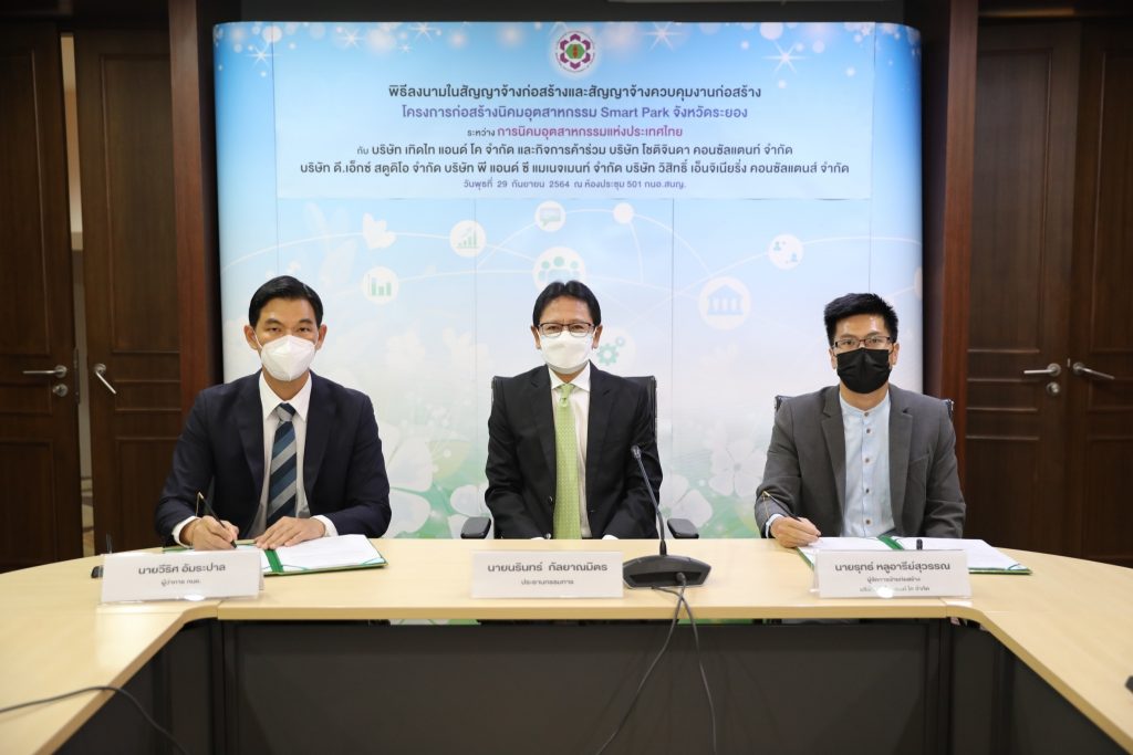 กรุงเทพฯ 30 ก.ย.- การนิคมอุตสาหกรรมแห่งประเทศไทย (กนอ.) เซ็นสัญญาว่าจ้างเอกชน ลุยงานก่อสร้างโครงการนิคมอุตสาหกรรม สมาร์ท ปาร์ค (Smart Park) รองรับ New S-curve หวังปรับฐานผลิตของไทยสู่อุตสาหกรรมเป้าหมายแห่งอนาคต