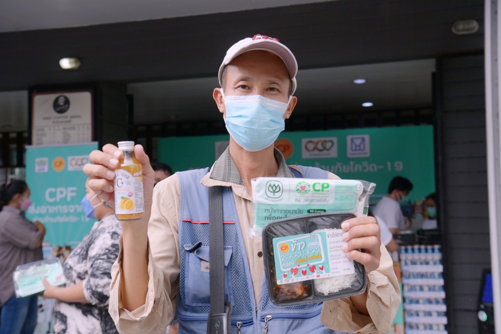 นายประสิทธิ์ บุญดวงประเสริฐ ประธานคณะผู้บริหาร ซีพีเอฟ กล่าวว่า กิจกรรมในวันนี้เป็นโครงการต่อเนื่องที่เครือซีพีและซีพีเอฟ ในช่วงแรกของการแพร่ระบาดของโรคโควิด เป็นการสนับสนุนบุคลากรทางการแพทย์ จากนั้นได้ขยายผลไปสู่ชุมชน โดยผนึกกำลัง กระทรวงเกษตรฯ และพันธมิตรอย่าง การเคหะแห่งชาติและสมาคมผู้สื่อข่าวเศรษฐกิจ ร่วมมอบอาหารอุ่นร้อนพร้อมรับประทานหลากหลายเมนู ที่ปรุงสุกสดใหม่ทุกวัน เช่น เมนูข้าวไก่ย่างถ่าน ข้าวผัดไก่เกาหลี เครื่องดื่มเพื่อสุขภาพ และหน้ากากอนามัย ให้แก่ประชาชนที่อาศัยอยู่โดยรอบบริเวณนี้ ซีพีเอฟ มีความยินดีเป็นอย่างยิ่งในการช่วยเหลือสังคมตามดำริของประธานอาวุโสธนินท์ เจียรวนนท์ ภายใต้หลักปรัชญา 3 ประโยชน์ ไม่ว่าจะอยู่ประเทศไหนเราต้องช่วยประเทศชาติ สังคม และประชาชนในประเทศนั้นๆ ขอขอบคุณทุกหน่วยงานที่มาร่วมกิจกรรมดีๆ ในครั้งนี้ หวังว่าจะช่วยบรรเทาทุุกข์และเยียวยาจิตใจ เป็นมื้อสำคัญให้ทุกคนได้อิ่มอร่อย มีความสุข แรงกายและกำลังใจฝ่าวิกฤตครั้งนี้ไปด้วยกัน