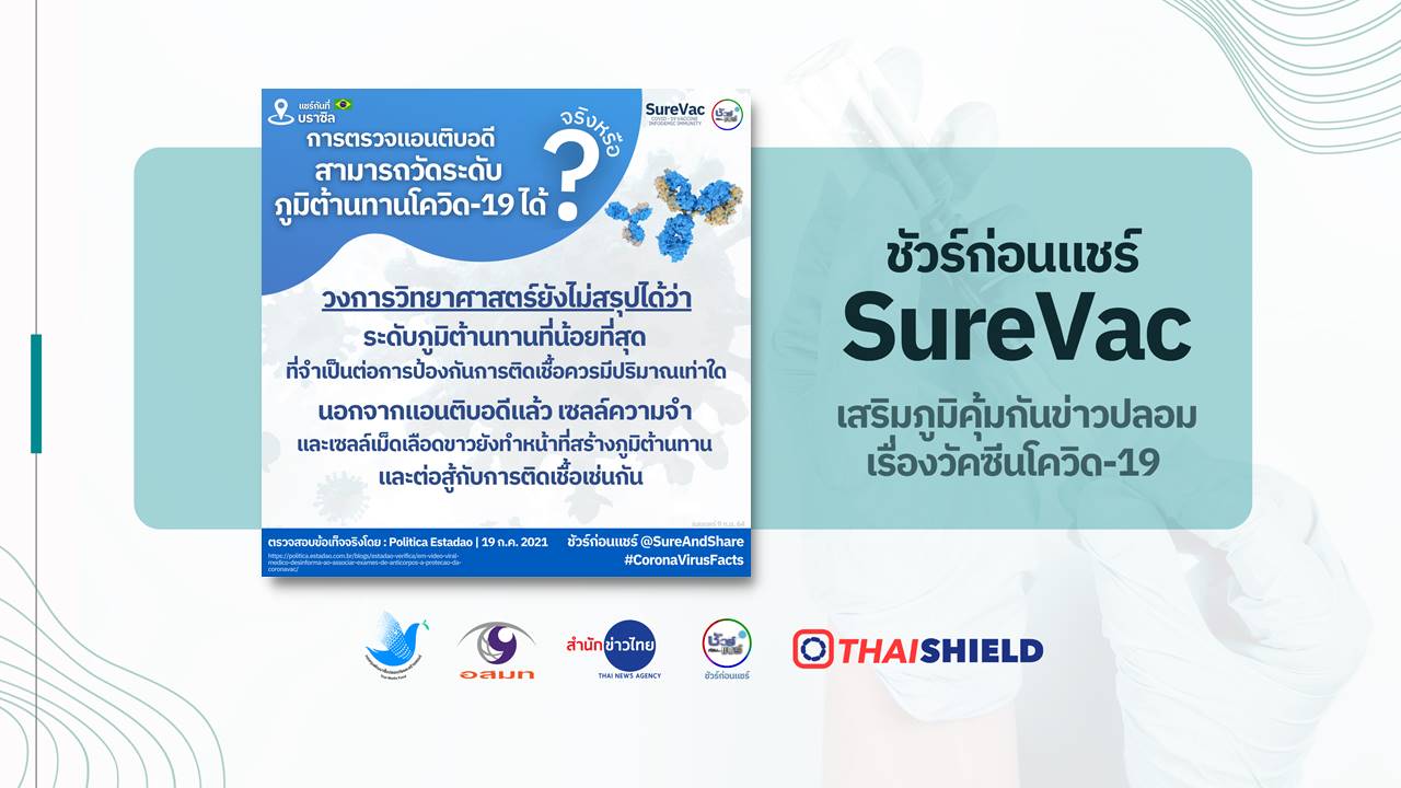 แต่วงการแพทย์ต่างยืนยันว่า การตรวจแอนตีบอดี้ในเลือดไม่สามารถวัดระดับภูมิต้านทานไวรัสโควิด 19 ในร่างกายได้