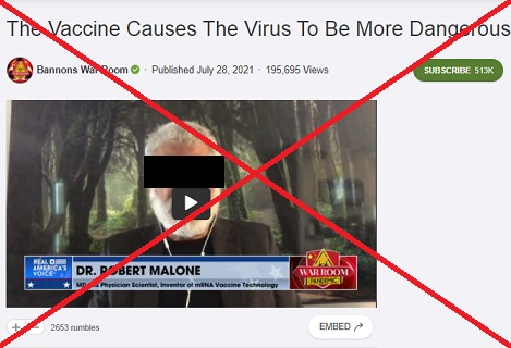 มีข้อมูลบิดเบือนเผยแพร่ทางสื่อสังคมออนไลน์ในสหรัฐอเมริกา เมื่อ โรเบิร์ต มาโลน นักชีววิทยาระดับโมเลกุลให้สัมภาษณ์ในรายการพอดแคสว่า คนที่ฉีดวัคซีนโควิด 19 แล้วติดเชื้อโควิด 19 สายพันธุ์เดลต้า จะมีปริมาณไวรัสในร่างกายสูงกว่าคนที่ยังไม่ฉีดวัคซีน จึงเป็นเหตุผลให้ทางการสหรัฐฯ ประกาศให้ชาวอเมริกันที่ฉีดวัคซีนแล้วกลับมาสวมหน้ากากอีกครั้ง ซึ่งคลิปการสัมภาษณ์ถูกนำไปแชร์ทางโลกออนไลน์นับหมื่นครั้ง