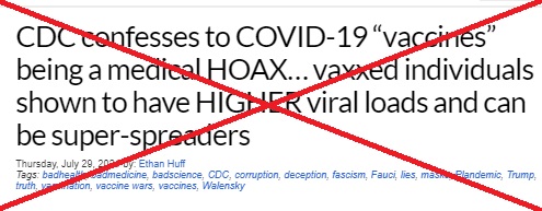 มีข้อมูลบิดเบือนประสิทธิภาพของวัคซีนโควิด 19 เผยแพร่ในสหรัฐอเมริกา โดย Natural News เว็บไซต์ข่าวที่มีแนวคิดต่อต้านวัคซีน อ้างว่าหน่วยงานป้องกันโรคติดต่อแห่งชาติสหรัฐอเมริกา (CDC) ยอมรับถึงความล้มเหลวในการป้องกันเชื้อไวรัสโควิด 19 สายพันธุ์เดลต้าจากการฉีดวัคซีน เมื่อพบว่าผู้ที่ฉีดวัคซีนโควิด 19 ครบ 2 โดส กลับมีเชื้อไวรัสในร่างกายมากกว่าผู้ที่ยังไม่ฉีดวัคซีน