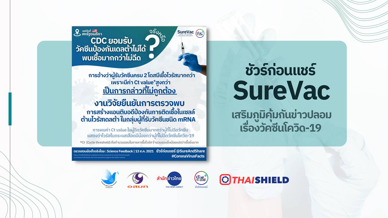 แต่การอ้างว่าผู้รับวัคซีนครบ 2 โดสมีเชื้อไวรัสมากกว่า เพราะมีค่า Ct value สูงกว่าเป็นการกล่าวที่ไม่ถูกต้อง เพราะค่า Ct (Cycle threshold) คือจำนวนรอบในการหาเชื้อไวรัส จำนวนรอบยิ่งน้อยแปลว่าเชื้อยิ่งมาก ดังนั้นค่า Ct value ของผู้ติดเชื้อที่ฉีดวัคซีนครบ 2 โดสที่ 22.77 จึงมีเชื้อไวรัสน้อยกว่าผู้ติดเชื้อที่ยังไม่ฉีดวัคซีนที่มีค่า Ct value ที่ 21.54