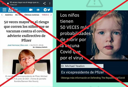 มีข้อมูลเท็จเผยแพร่ทางสื่อสังคมออนไลน์ในสหรัฐอเมริกา จากบทสัมภาษณ์ในรายการของ สตีฟ แบนนอน ที่ปรึกษาของอดีตประธานาธิบดี โดนัลด์ ทรัมป์ ที่สัมภาษณ์ ไมค์ เยียดอน อดีตนักวิจัยของบริษัท Pfizer ระหว่างปี 1995 ถึง 2011 ที่กลายมาเป็นนักรณรงค์ต่อต้านวัคซีนโควิด 19 ในปัจจุบัน