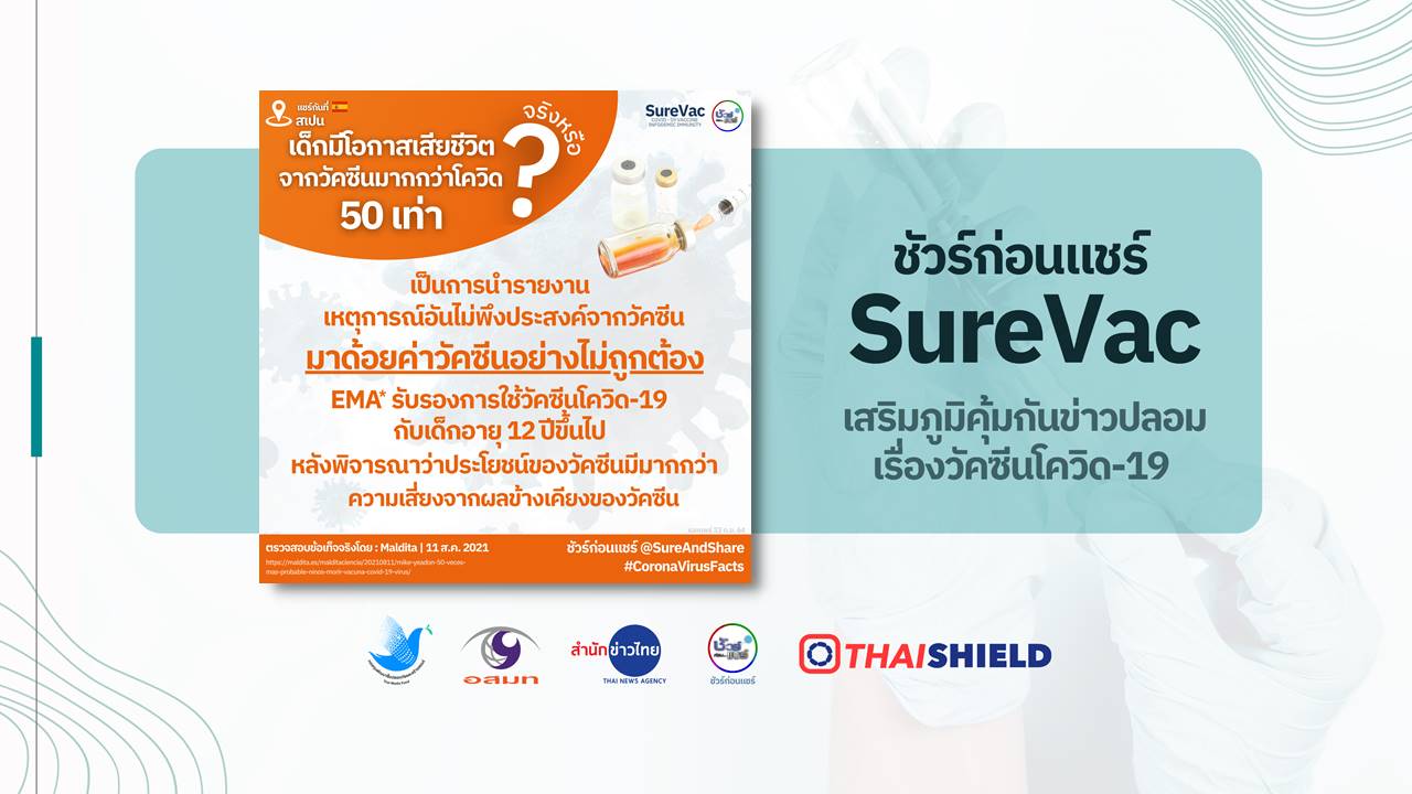 - EMA รับรองการใช้วัคซีนโควิด 19 กับเด็กอายุ 12 ปีขึ้นไป หลังพิจารณาว่าประโยชน์ของวัคซีนมีมากกว่าความเสี่ยงจากผลข้างเคียงของวัคซีน