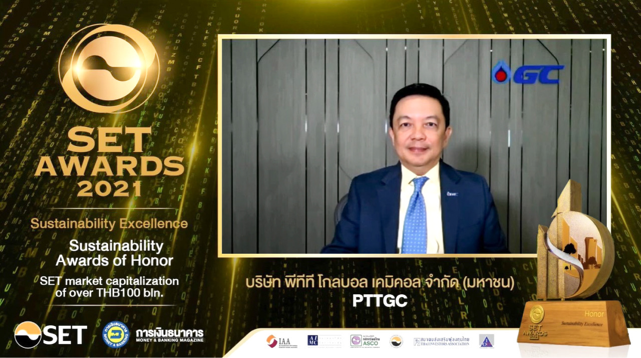 นายคงกระพัน อินทรแจ้ง ประธานเจ้าหน้าที่บริหาร บริษัท พีทีที โกลบอล เคมิคอล จำกัด (มหาชน) หรือ GC รับรางวัลเกียรติยศด้านความยั่งยืน ปี 2564 (SET Sustainability Award of Honor) จากการประกาศรางวัล “SET Awards 2021” จัดโดยตลาดหลักทรัพย์แห่งประเทศไทย ได้รับต่อเนื่องเป็นปีที่ 4 สะท้อนถึงการดำเนินธุรกิจที่บูรณาการความยั่งยืน ตามกรอบ ESG ที่ประกอบด้วย ด้านสิ่งแวดล้อม (Environmental) ด้านสังคม (Social) และด้านบรรษัทภิบาล (Governance)