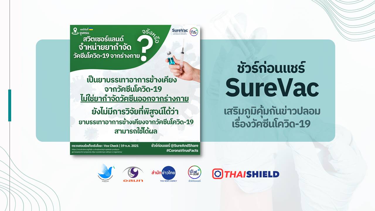 มีข้อมูลบิดเบือนแพร่ทางสื่อสังคมออนไลน์ในประเทศยูเครน โดยอ้างว่าร้านขายยาในประเทศสวิตเซอร์แลนด์ เริ่มจำหน่ายยากำจัดวัคซีนโควิด 19 ออกจากร่างกายของคนที่ฉีดวัคซีนโดยเฉพาะ