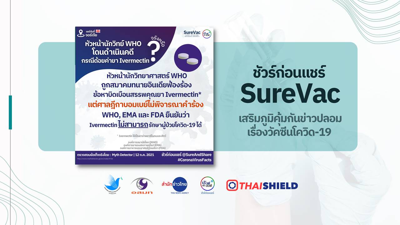 - สมญา สวามินาธาน หัวหน้านักวิทยาศาสตร์ WHO ถูกสมาคมทนายอินเดียฟ้องร้องข้อหาบิดเบือนสรรพคุณยา Ivermectin แต่ศาลฎีกาบอมเบย์ไม่พิจารณาคำร้อง
