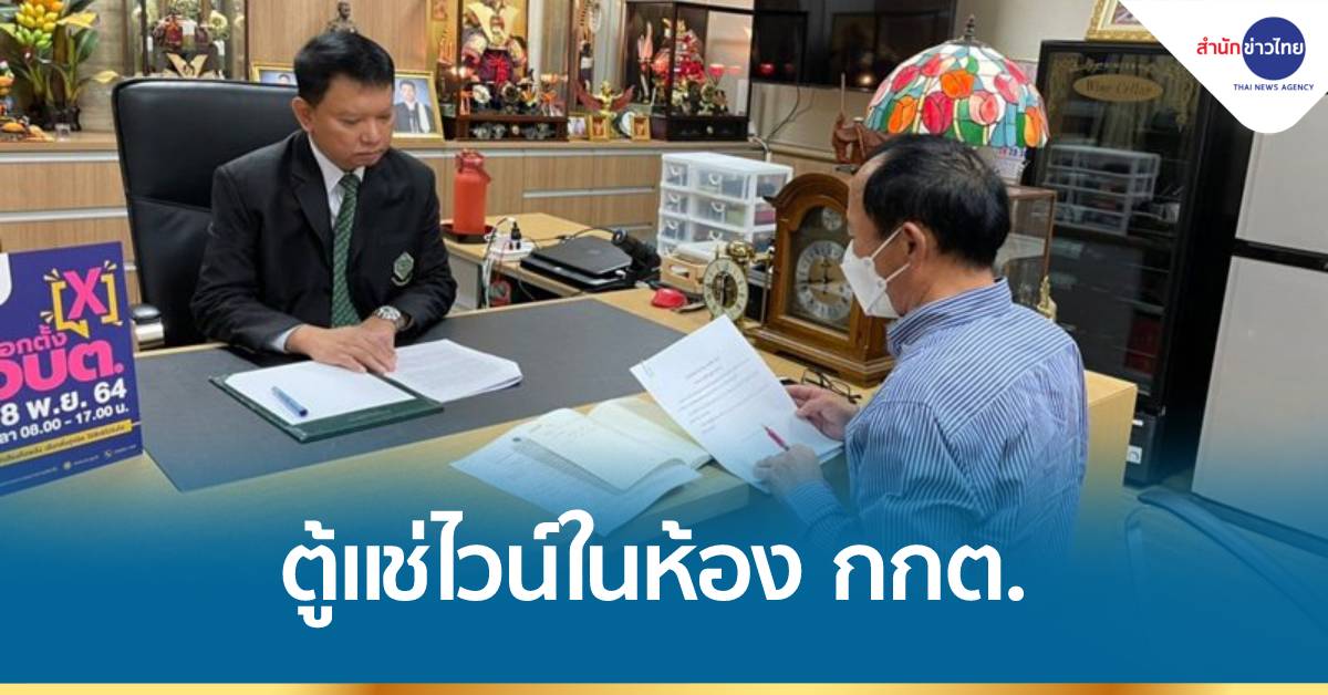 ผู้สื่อข่าวรายงานว่า เฟซบุ๊กสำนักงานคณะกรรมการการเลือกตั้ง(กกต.) โพสต์ภาพนายฐิติเชฏฐ์ นุชนาฏ กกต. กำลังให้สัมภาษณ์ผู้สื่อข่าวในห้องทำงาน ที่สำนักงาน กกต. เกี่ยวกับความพร้อมการจัดการเลือกตั้งสมาชิกสภาและนายกองค์การบริหารส่วนตำบล(อบต.) ที่จะมีขึ้นวันที่ 28 พฤศจิกายนนี้ แต่ปรากฎว่าถูกคนในโลกออนไลน์ตาดี เห็นตู้ซึ่งมีลักษณะที่คล้ายกับตู้แช่ไวน์ขนาดใหญ่อยู่ในภายในห้องทำงานของนายฐิติเชฏฐ์
