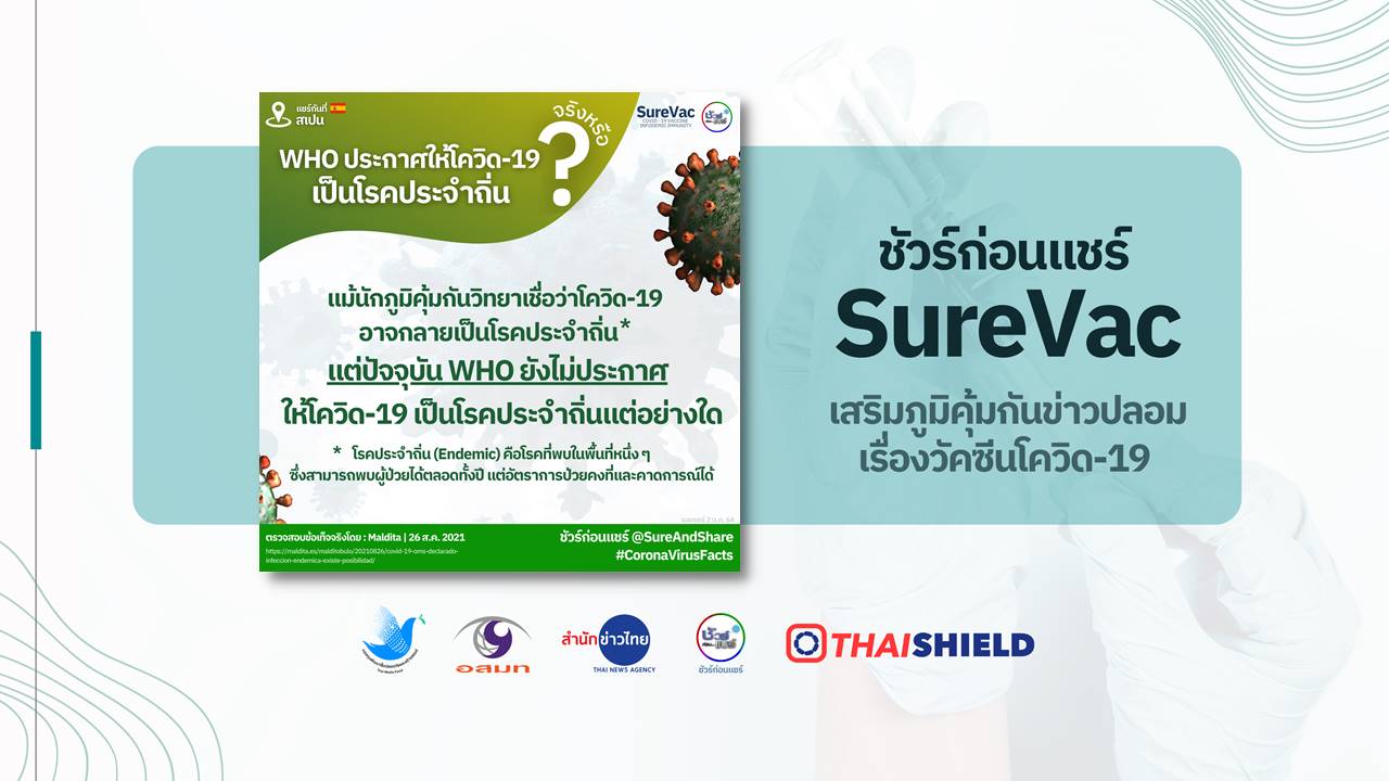 - แม้นักภูมิคุ้มกันวิทยาเชื่อว่าโควิด 19 อาจกลายเป็นโรคประจำถิ่น แต่ปัจจุบัน WHO ยังไม่ประกาศให้โควิด 19 เป็นโรคประจำถิ่นแต่อย่างใด