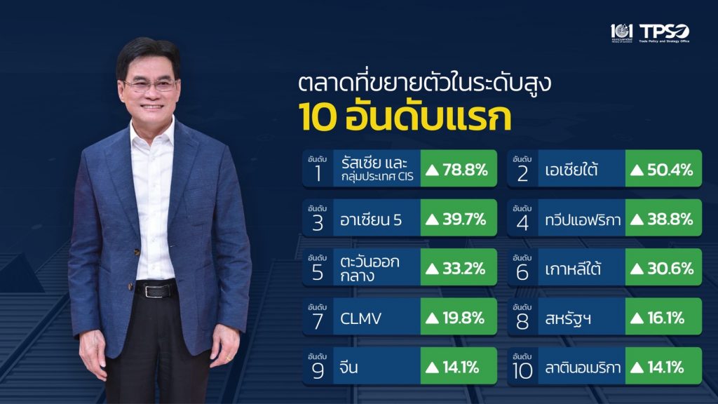 นายจุรินทร์ ลักษณวิศิษฏ์ รองนายกรัฐมนตรี และรัฐมนตรีว่าการกระทรวงพาณิชย์เปิดเผยถึงตัวเลขการส่งออกของประเทศในเดือนตุลาคม 64 พบว่า ยอดการส่งออกยังเป็นบวกอยู่ที่ร้อยละ 17.4 เทียบกับเดือนเดียวกันของปีก่อน โดยคิดเป็นมูลค่ากว่า 22,738.7 ล้านดอลลาร์สหรัฐ แต่หากหักทองคำและนำ้มันรวมถึงยุทธปัจจัยต่างๆตัวเลขส่งออกของไทยบวกร้อยละ 12.2 เป็นไปทิศทางการส่งออกของโลกที่ดีขึ้น แม้ปัญหาการแพร่ระบาดโควิดในหลายประเทศทั่วโลกยังเป็นผลกระทบอยู่บ้าง แต่ภาครัฐและเอกชนยังคงเดินหน้าร่วมกันแก้ไขปัญหาและอุปสรรคต่างๆ รวมถึงเร่งเจาะตลาดต่างๆอย่างต่อเนื่องทั้งตลาดเก่าและตลาดใหม่ โดยเฉพาะในตลาดรัฐเซียในกลุ่มซีไอเอส เอเชียใต้ อาเซียน ตะวันออกกลาง แอฟริกา เกาหลีใต้ กลุ่ม CLMV สหรัฐ จีน ญี่ปุ่น ยุโรปและอีกหลายประเทศเพื่อให้การส่งออกในแต่ละเดือนให้สูงขึ้น