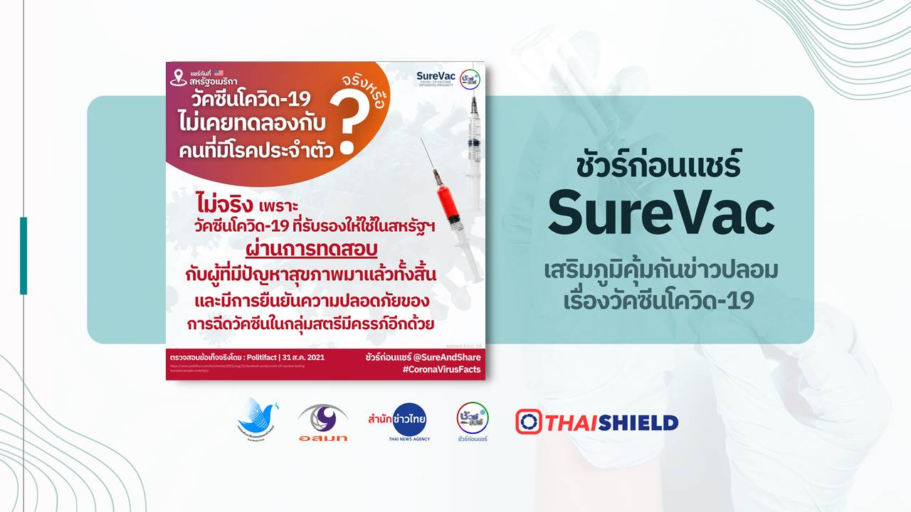 - วัคซีนโควิด 19 ที่รับรองให้ใช้ในสหรัฐฯ ผ่านการทดสอบกับผู้ที่มีปัญหาสุขภาพมาแล้วทั้งสิ้น