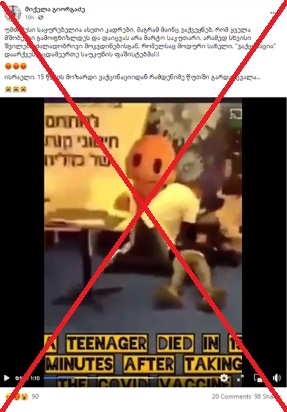 มีคลิปวิดีโอและข้อมูลเท็จเผยแพร่ทาง Facebook ในประเทศจอร์เจีย โดยอ้างว่าเด็กหนุ่มชาวอิสราเอลวัย 15 ปี เป็นลมหมดสติในโรงพยาบาลหลังจากฉีดวัคซีนโควิด 19 แค่ไม่กี่นาที ก่อนเสียชีวิตในเวลาต่อมา