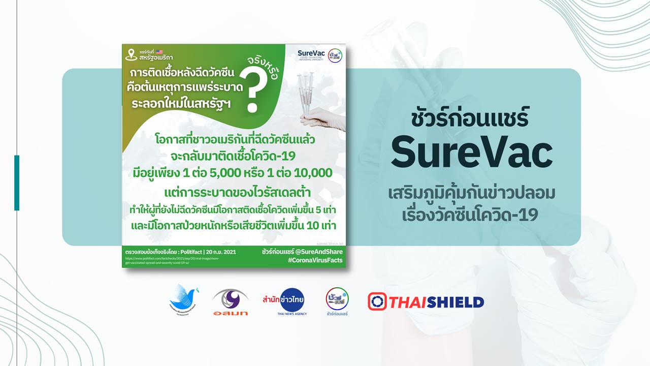 - โอกาสที่ชาวอเมริกันที่ฉีดวัคซีนแล้วจะกลับมาติดเชื้อโควิด 19 มีอยู่เพียง 1 ต่อ 5,000 หรือ 1 ต่อ 10,000