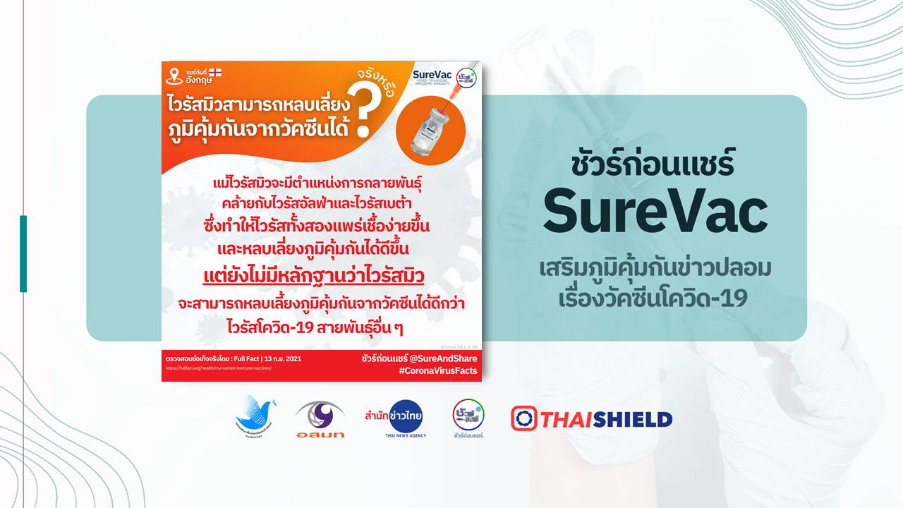 - แต่ยังไม่มีหลักฐานว่าไวรัสมิวจะสามารถหลบเลี้ยงภูมิคุ้มกันจากวัคซีนได้ดีกว่าไวรัสโควิด 19 สายพันธุ์อื่นๆ