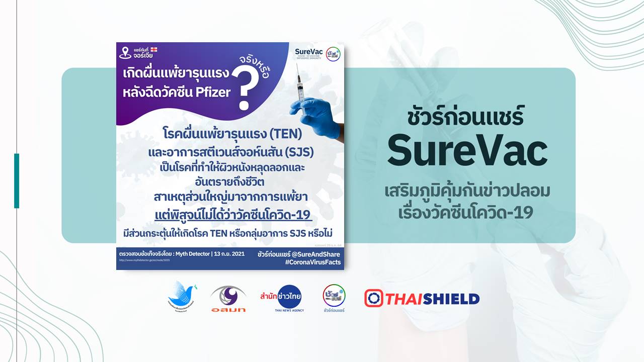 - แต่พิสูจน์ไม่ได้ว่าวัคซีนโควิด 19 มีส่วนกระตุ้นให้เกิดโรค TEN หรือกลุ่มอาการ SJS หรือไม่