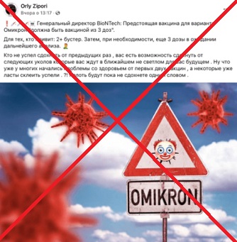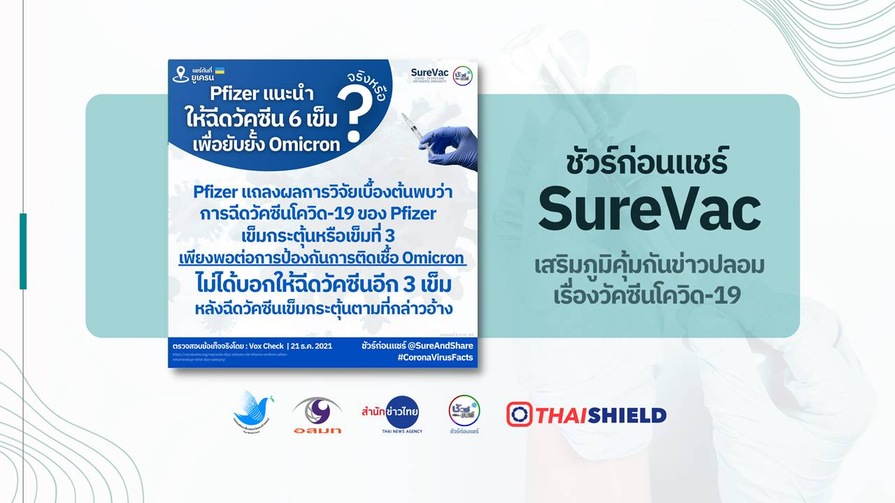 มีข้อมูลบิดเบือนเผยแพร่ทาง Facebook ในประเทศยูเครน โดยอ้างว่าบริษัท Pfizer แนะนำว่าการยับยั้งไวรัสโควิด 19 สายพันธุ์ Omicron ประชาชนจำเป็นต้องฉีดวัคซีนโควิด 19 ของบริษัทจำนวน 6 โดส