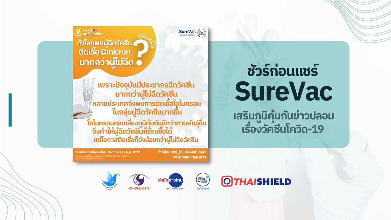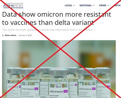 มีข้อมูลบิดเบือนเผยแพร่ทาง Facebook ในสหรัฐอเมริกา โดย Alpha News เว็บไซต์ที่นำเสนอเนื้อหาแนวอนุรักษ์นิยม อ้างว่าข้อมูลจากหลายประเทศพบว่า ไวรัสโควิด 19 สายพันธุ์โอไมครอน ทำให้ผู้ที่ฉีดวัคซีนเสี่ยงติดเชื้อมากกว่าผู้ที่ไม่ฉีดวัคซีน