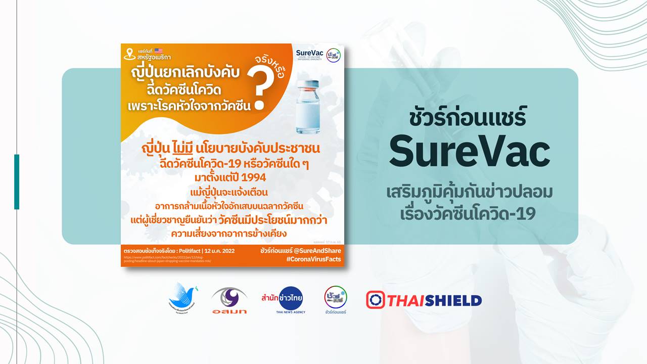 - ญี่ปุ่นไม่มีนโยบายบังคับประชาชนฉีดวัคซีนโควิด 19 หรือวัคซีนใดๆ มาตั้งแต่ปี 1994
