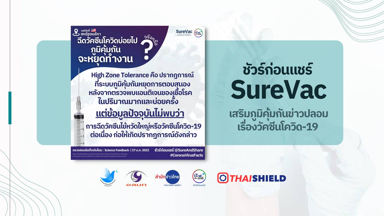 มีข้อมูลบิดเบือนเผยแพร่ทาง Twitter ในสหรัฐอเมริกา โดย โรเบิร์ต มาโลน นักวิทยาศาสตร์ที่มีประวัติเผยแพร่ข่าวปลอมเกี่ยวกับวัคซีนโควิด 19 อ้างในการให้สัมภาษณ์กับรายการโทรทัศน์ The First TV เมื่อเดือนธันวาคมปี 2021 โดยกล่าวว่า การฉีดวัคซีนโควิด 19 ซ้ำๆ อาจทำให้ระบบภูมิคุ้มกันหยุดการตอบสนอง ซึ่งเป็นปรากฏการณ์ที่เรียกว่า High Zone Tolerance ซึ่งพบในผู้ที่ฉีดวัคซีนไข้หวัดใหญ่มากเกินไป จนภูมิคุ้มกันตอบสนองน้อยลง