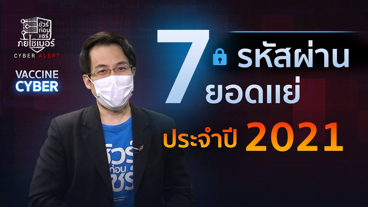 รหัสผ่าน 7 อันดับ ยอดแย่แห่งปี 2021 ที่คนทั่วโลกใช้ซ้ำกันเยอะที่สุด จะมีรหัสผ่านของคุณอยู่ด้วยหรือไม่ ติดตามได้ในช่วงใหม่ “ชัวร์ก่อนแชร์ วัคซีนไซเบอร์” กับ คุณพีรพล อนุตรโสตถิ์ จากศูนย์ชัวร์ก่อนแชร์
