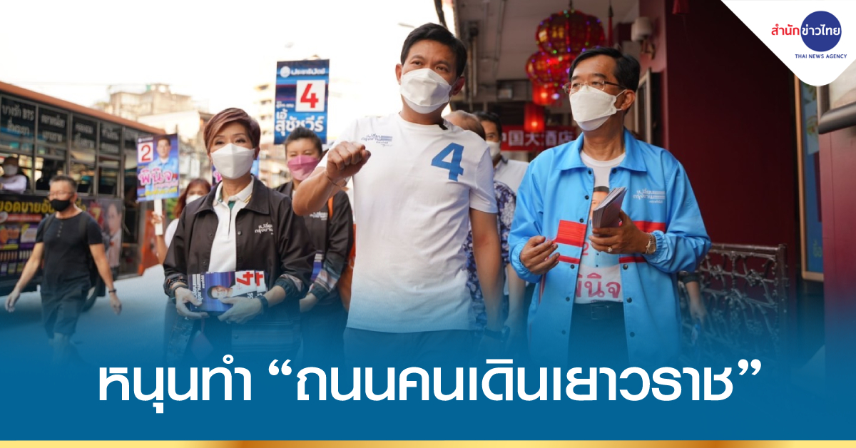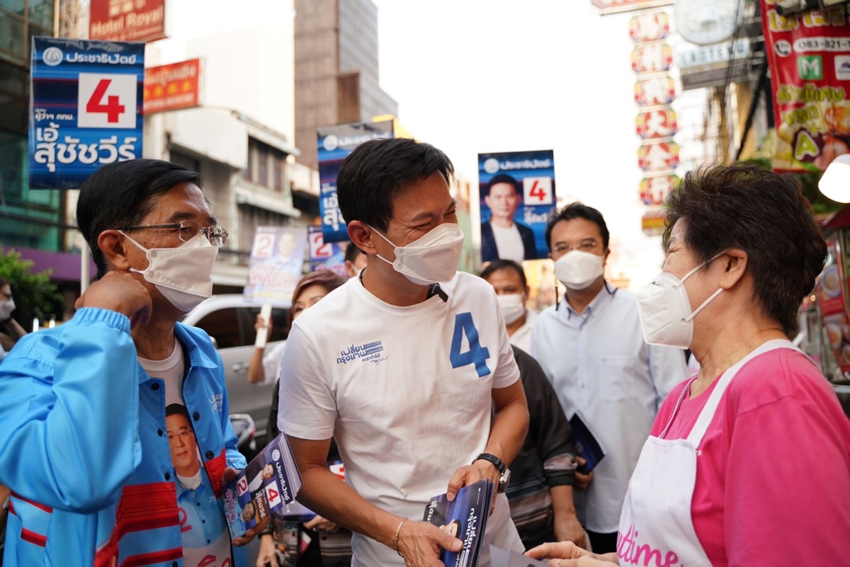 วันที่ 12 เมษายน 2565 เวลา 17.00 น. ศ.ดร.สุชัชวีร์ สุวรรณสวัสดิ์ ผู้สมัครผู้ว่าฯ กทม. หมายเลข 4 พรรคประชาธิปัตย์ พร้อมด้วย นายพินิจ กาญจนชูศักดิ์ ผู้สมัคร ส.ก. เขตสัมพันธวงศ์ หมายเลข 2 ลงพื้นที่หาเสียงย่านเยาวราช มีพี่น้องประชาชนให้กำลังใจอย่างเป็นกันเองตลอดทาง พร้อมชูนโยบาย “ขายได้ขายดี” เคียงข้างพ่อค้าแม่ค้า เพิ่มตลาดทำมาหากิน สนับสนุนพื้นที่ทำมาค้าขายให้กับคนตัวเล็ก