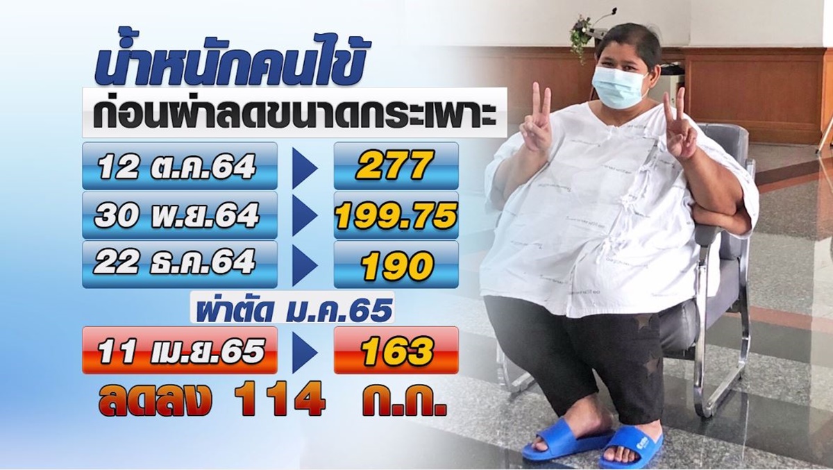 กรุงเทพฯ 12 เม.ย. – โรงพยาบาลราชวิถี พลิกชีวิตคนไข้โรคอ้วน จากน้ำหนักเกือบ 300 กก. จนเกือบฆ่าตัวตาย รักษา 6 เดือน จนกลับมาเดินเองได้ น้ำหนักลดลงเหลือ 163 กก. ด้วยการผ่าตัดส่องกล้องลดขนาดกระเพาะ. – สำนักข่าวไทย