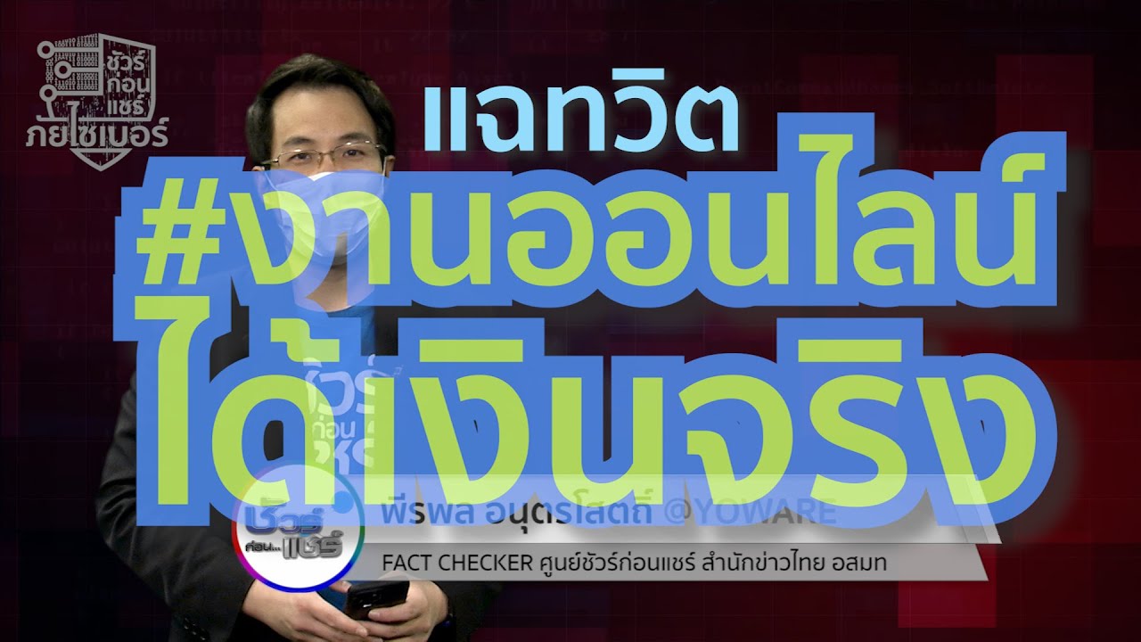 ชัวร์ก่อนแชร์ ภัยไซเบอร์ แฉกลโกงคนร้าย เตือนภัยการหลอกลวงที่มาในคราบงานออนไลน์ที่เชิญชวนอยู่ตามทวิตเตอร์ ติดตาม กับคุณพีรพล อนุตรโสตถิ์ จากศูนย์ชัวร์ก่อนแชร์