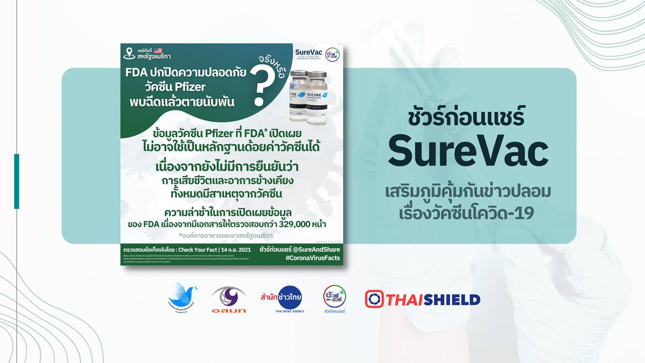 ส่วนข้ออ้างที่ว่าองค์การอาหารและยาสหรัฐอเมริกา (FDA) พยายามปกปิดปัญหาด้านความปลอดภัยของวัคซีนโควิด 19 บริษัท Pfizer-BioNTech ก็ไม่เป็นความจริง เพราะความล่าช้าในการเปิดเผยข้อมูลมาจากความไม่พร้อมของ FDA ในการรับมือกับข้อมูลจำนวนมหาศาลของบริษัท Pfizer จนถูก Public Health and Medical Professionals for Transparency Documents (PHMPT) หน่ายงานที่ตรวจสอบความโปร่งใสของบุคลากรและหน่วยงานด้านสาธารณสุข ทำการกดดันให้ FDA เร่งเปิดเผยข้อมูลของวัคซีนแก่สาธารณชน