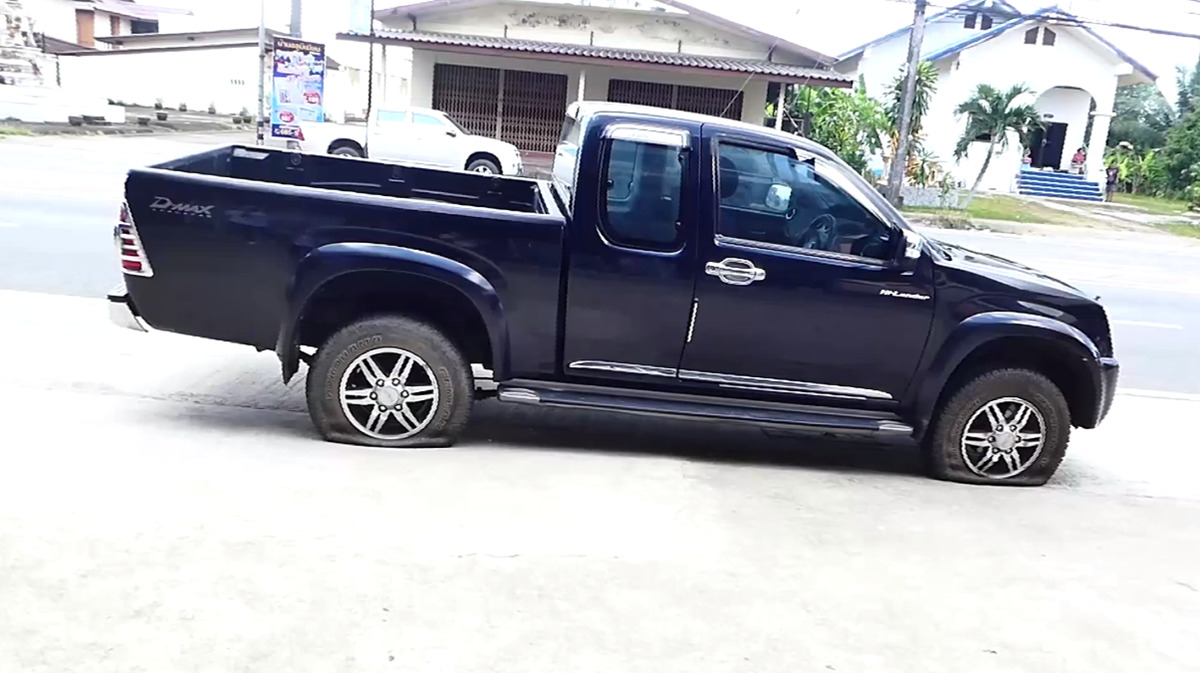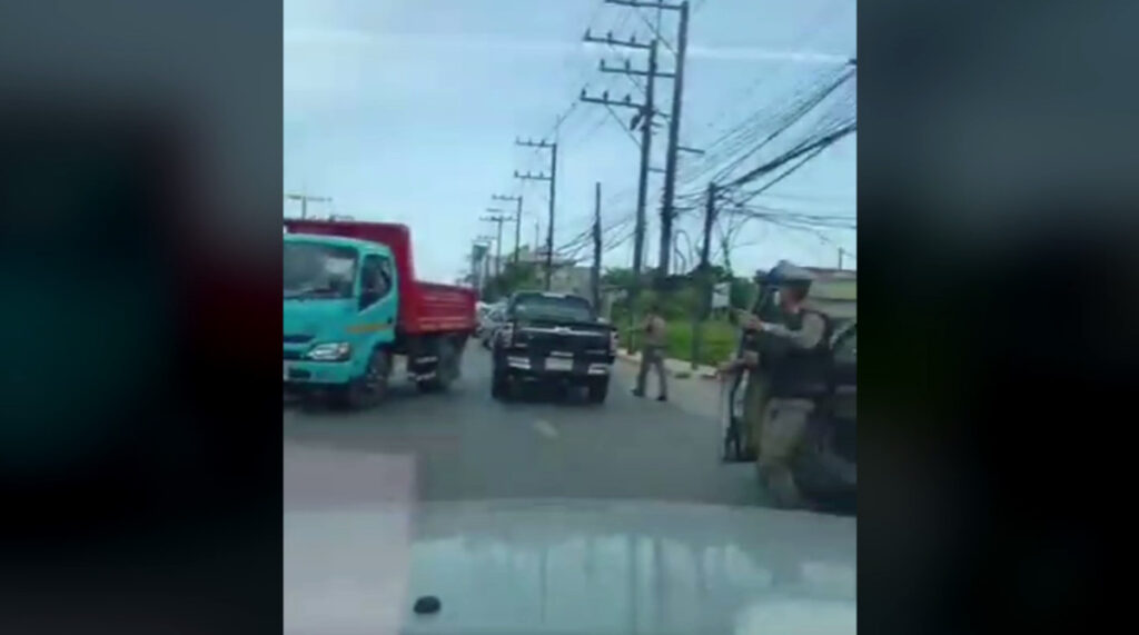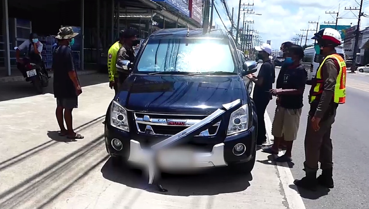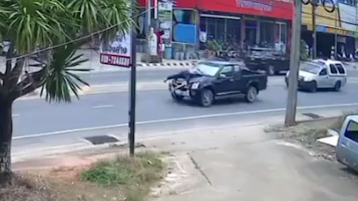 เจ้าหน้าที่ตำรวจและหน่วยกู้ภัยไล่ติดตามสกัดรถกระบะคันดังกล่าวที่ใช้ความเร็วไม่มากนัก โดยมีผู้หญิงเป็นคนขับ เบาะนั่งด้านข้างมีเด็กชายวัยประมาณ 5 ขวบ นั่งอยู่ด้วย ส่วนกระโปรงหน้ารถมีผู้ชายใช้มือทั้งสองข้างจับเกาะติดไว้อย่างแน่น โดยกระจกหน้ารถมีรอยแตกเป็นวงกว้าง ตำรวจพยายามหยุดรถและตั้งด่านสกัด แต่ไม่เป็นผล เพราะต้องใช้ความละมุนละม่อมในการสกัดจับ เนื่องจากในรถมีเด็ก และเกรงว่าชายที่เกาะติดฝากระโปรงรถจะพลัดตกลงมา
