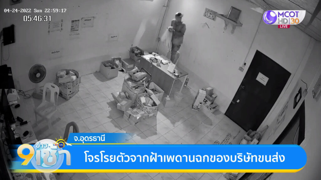 เมื่อวานนี้ (26 เม.ย.) ตำรวจ สภ.เมืองอุดรธานี ได้รับแจ้งมีคนปีนเข้าไปลักทรัพย์ที่บริษัทส่งสินค้าเอกชนแห่งหนึ่ง ที่เกิดเหตุเป็นโกดังขนาดใหญ่ มีสำนักงานอยู่ภายในโกดัง พบ น.ส.จิรภรณ์ อายุ 30 ปี ผู้จัดการ ได้รับมอบหมายจากบริษัทฯ นำตรวจที่เกิดเหตุ พร้อมให้การว่า บริษัทฯ เปิดทำการ 08.00-17.00 น. โดยจะเคลียร์พัสดุ และปิดโกดังกลับบ้าน เวลา 19.00 น. เมื่อวันอาทิตย์ที่ผ่านมา (24 เม.ย.) ได้ตรวจสอบสินค้าที่จะนำไปส่งลูกค้า ปรากฏว่าสินค้าหายไป จึงได้ตรวจสอบภาพจากกล้องวงจรปิดภายในบริษัทฯ พบว่า เวลา 22.58 น. ของวันที่ 24 เม.ย.ที่ผ่านมา มีคนร้ายเป็นชาย สวมเสื้อคลุมแขนยาว กางเกงขาสั้นลายพราง มีผ้าคลุมปิดบังใบหน้า และติดไฟส่องสว่างที่ศีรษะ ปีนฝ้าเพดานโรยตัวลงมารื้อกล่องพัสดุ ขโมยโทรศัพท์มือถือของบริษัท และรื้อค้นสินค้าของลูกค้า