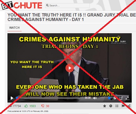 จากการตรวจสอบโดย Politifact พบว่า การแถลงในคลิปวิดีโอเป็นแค่การจำลองการพิจารณาคดี ไม่ใช่การพิจารณาคดีที่แท้จริง โดยข้อความตรงมุมขวาล่างของวิดีโอเวอร์ชั่นที่เผยแพร่ทาง YouTube และทางแพลตฟอร์มคลิปวีดีโอ Odysee มีการแจ้งว่าเนื้อหาในคลิปคือการจำลองการพิจารณาคดี แต่ในเวอร์ชั่นที่อัพโหลดทาง Bitchute มีการตัดข้อความดังกล่าวออกไป