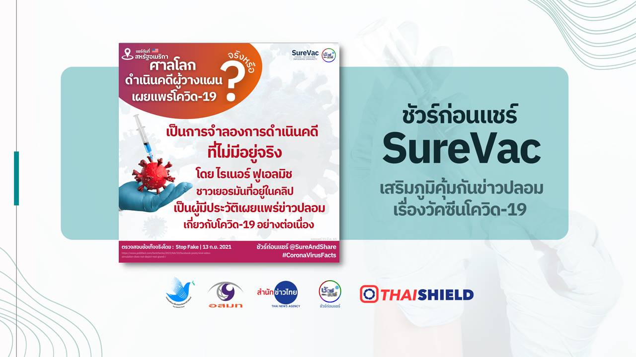 - ไรเนอร์ ฟูเอลมิช ทนายชาวเยอรมันที่อยู่ในคลิป เป็นผู้มีประวัติเผยแพร่ข่าวปลอมเกี่ยวกับโควิด 19 อย่างต่อเนื่อง