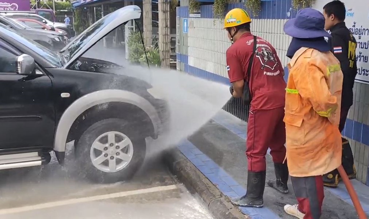 เกิดเหตุไฟไหม้รถกระบะสีดำ ทะเบียนสระแก้ว บริเวณหน้าห้องน้ำ ภายในปั๊มน้ำมัน พื้นที่ ต.บางพระ อ.ศรีราชา จ.ชลบุรี เจ้าหน้าที่ต้องนำรถดับเพลิง 2 คัน เร่งฉีดน้ำสกัดเพลิงที่ห้องเครื่องและตัวรถ พร้อมทั้งเข้าไปปิดแก๊สของรถ โดยใช้เวลากว่า 10 นาที จึงควบคุมเพลิงไว้ได้ ท่ามกลางความตื่นตกใจของผู้พบเห็น ซึ่งต่างรีบขับรถออกจากปั๊มกันอย่างโกลาหล