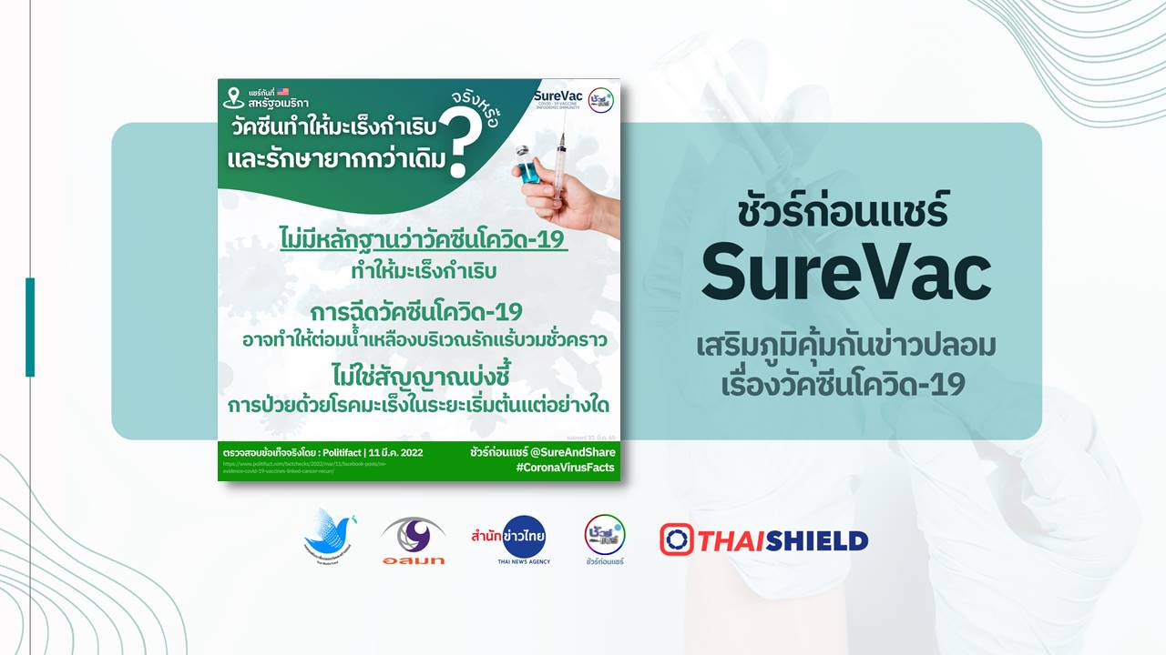 - ไม่มีหลักฐานว่าวัคซีนโควิด-19 ทำให้มะเร็งกำเริบ