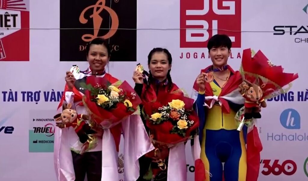 ส่วนไทม์ไทรอัลหญิง ระยะทาง 30 กิโลเมตร สิบตรีหญิง เพชรดารินทร์ สมราช นักปั่นทีมชาติไทย เร่งสุดแรง ทำเวลาได้ 42.28 น. คว้าเหรียญทองแดงมาครอง เหรียญทอง เดเลีย อายัสตินา พริอัตนา จากอินโดนีเซีย ทำเวลา 40 นาที 8.445 วินาที เหรียญเงิน เยเว่ย หลัว จากสิงคโปร์ ทำเวลา 40 นาที 47.051 วินาที