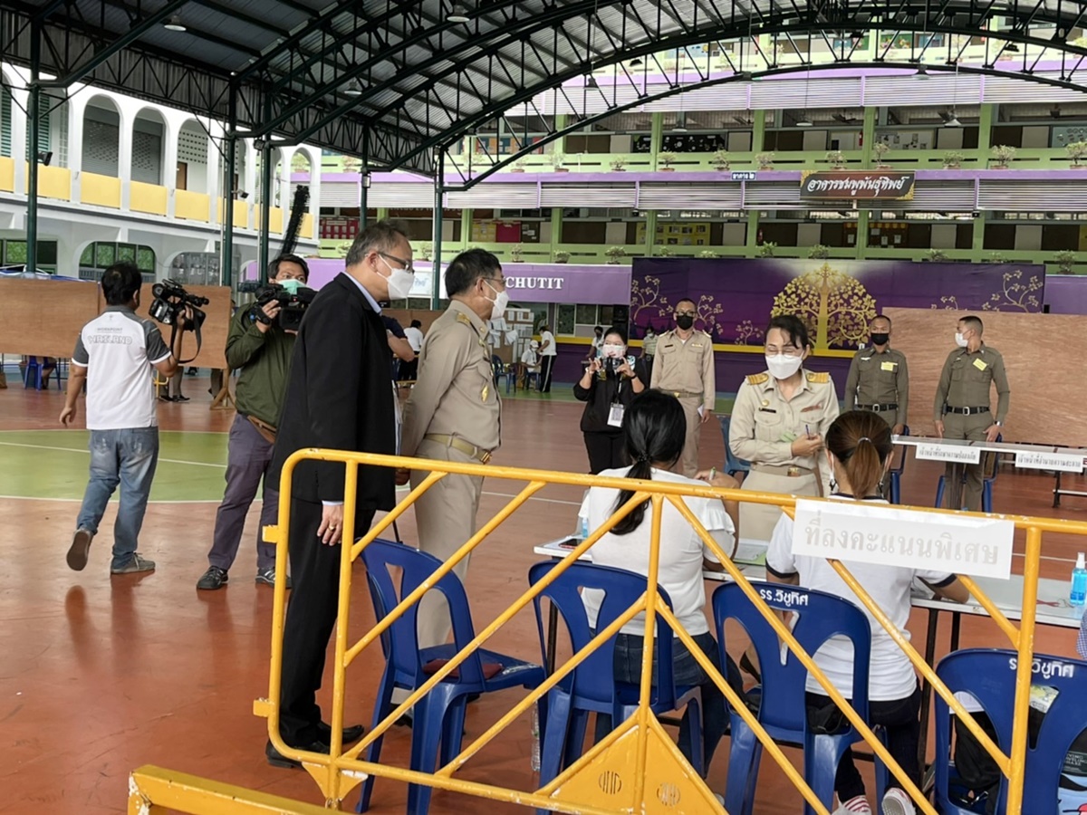 นายขจิต ชัชวานิชย์ ปลัดกรุงเทพมหานคร พร้อมนายนิวัฒน์ ดวงจิโน ผอ.เขตดินแดง ลงพื้นที่โรงเรียนวิชูทิศ ถนนประชาสงเคราะห์ เขตดินแดง ตรวจดูการนับคะแนนผู้ใช้สิทธิเลือกตั้งผู้ว่าราชการกรุงเทพมหานครและสมาชิกสภากรุงเทพมหานคร 4 หน่วย ภายในโรงเรียน ทั้งนี้ ภาพรวมการเลือกตั้งเป็นไปด้วยความเรียบร้อย ได้รับความร่วมมือจากประชาชนดี ไม่มีปัญหา และมีผู้เดินทางมาใช้สิทธิอย่างต่อเนื่อง มีบางพื้นที่ที่ต้องเผชิญกับฝน แต่ไม่มาก อย่างไรก็ตาม คาดว่าวันนี้มีผู้มาใช้สิทธิเลือกตั้งประมาณ 60 เปอร์เซ็นต์