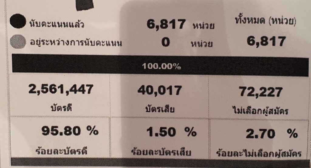 • บัตรไม่ประสงค์ลงคะแนน จำนวน 72,227 บัตร คิดเป็นร้อยละ 2.70
