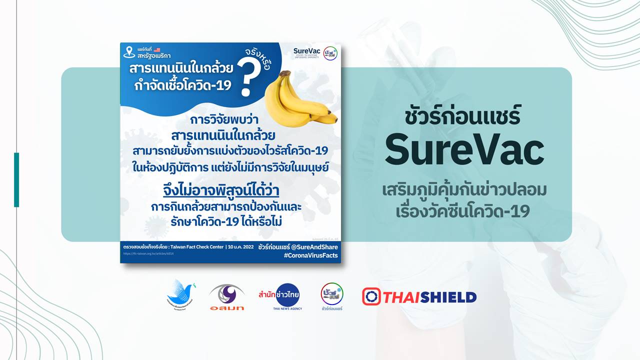 - แต่การยังไม่มีการวิจัยในมนุษย์ จึงไม่อาจพิสูจน์ได้ว่าการกินกล้วยสามารถป้องกันและรักษาโควิด-19 ได้หรือไม่
