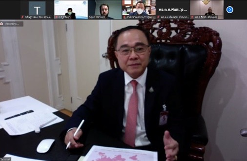 พล.ต.อ.ธรรมศักดิ์ เปิดเผยว่าได้รับมอบหมายจาก พลเอกประวิตร รองนายกรัฐมนตรี ให้เร่งผลักดันความร่วมมือกับองค์การระหว่างประเทศ โดยได้นำผู้บริหารโครงการต่อต้านการค้ามนุษย์ในประเทศไทย (USAID Thailand CTIP) และ Winrock International ของรัฐบาลสหรัฐอเมริกา ร่วมหารือกับคณะทำงานของกระทรวงแรงงาน เพื่อพัฒนาระบบและแนวทางป้องกันช่วยเหลือและแก้ไขปัญหาการใช้แรงงานเด็ก แรงงานบังคับและการค้ามนุษย์ และได้นำคณะผู้แทนและภาคเอกชนที่เข้าร่วมโครงการ (อาทิ Mars Petcare Thailand, Nauticomm, Etneca, Stella Maris, ITF, EJF) เข้าศึกษาดูงานศูนย์ปฏิบัติการเฝ้าระวังการทำการประมง (FMC) ณ กรมประมง เพื่อพัฒนาเทคโนโลยีสมัยใหม่สำหรับแรงงานต่างด้าวในภาคประมง ทั้งนี้ อยู่ระหว่างจัดทำร่าง MOU เพื่อกำหนดวัตถุประสงค์และขอบเขตการทำงานร่วมกันต่อไป สำหรับรูปแบบการทำงานของรัฐบาลไทยเชิงรุกโดยองค์การระหว่างประเทศและภาคเอกชนเข้ามาเป็นหุ้นส่วนในการขจัดปัญหาการค้ามนุษย์อย่างใกล้ชิดในช่วงหลายปีที่ผ่านมา จึงได้รับการชื่นชมจากต่างประเทศ โดยมีความก้าวหน้าและความมุ่งมั่นเป็นที่ประจักษ์ในการดำเนินความพยายามของรัฐบาลไทยอย่างต่อเนื่องภายใต้การกำกับดูแลของ พลเอก ประวิตร วงษ์สุวรรณ รองนายกรัฐมนตรี
