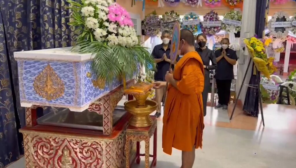 บ่ายวันนี้ที่วัดสัตหีบ จังหวัดชลบุรี สถานตั้งศพนายกรวิทย์ เม็งคำมี หรือ กั๊ก นักเรียนมัธยมศึกษาปีที่ 5 อายุ 17 ปี ผู้เสียชีวิตจากเหตุเพลิงไหม้ MOUNTAIN B ซึ่งญาติกำหนดพิธีเผาศพวันนี้ บรรยากาศภายในงานเป็นไปด้วยความเศร้าโศกเสียใจของครอบครัวและเพื่อนนักเรียนที่มาร่วมงานมากกว่า 100 คน โดยเฉพาะแม่ผู้เสียชีวิตที่ร้องไห้ตลอดเวลา จนเกือบเป็นลมภายในงานหลายครั้ง