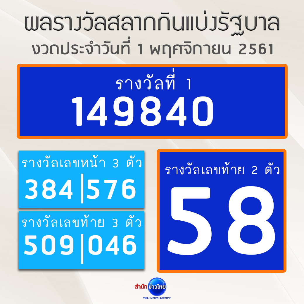 รางวัลเลขท้าย 2 ตัว ได้แก่ 58