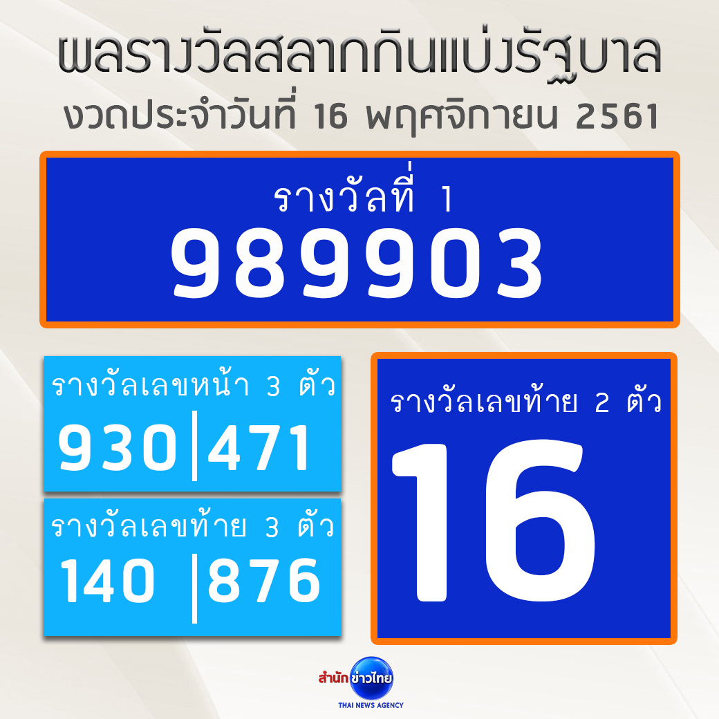 รางวัลเลขท้าย 2 ตัว ได้แก่ 16