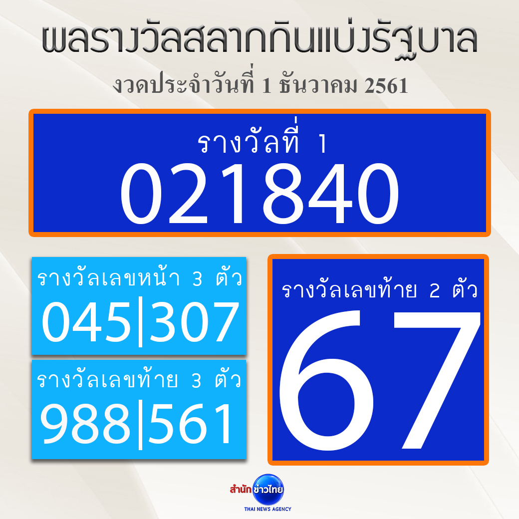 รางวัลที่ 1 ได้แก่ 021840