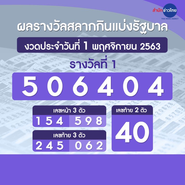ผลรางวัลสลากกินแบ่งรัฐบาล งวดวันที่ 1 พฤศจิกายน 2563
