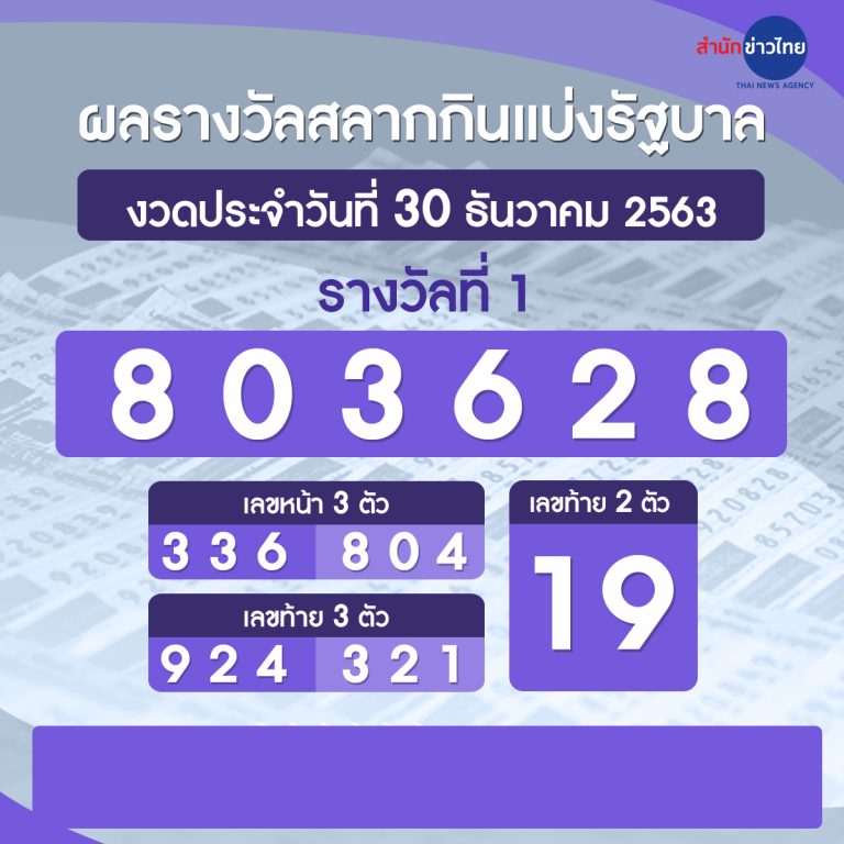 ผลรางวัลสลากกินแบ่งรัฐบาล งวดวันที่ 30 ธันวาคม 2563