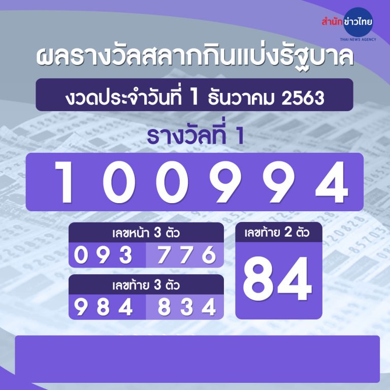 ผลรางวัลสลากกินแบ่งรัฐบาล งวดวันที่ 1 ธันวาคม 2563
