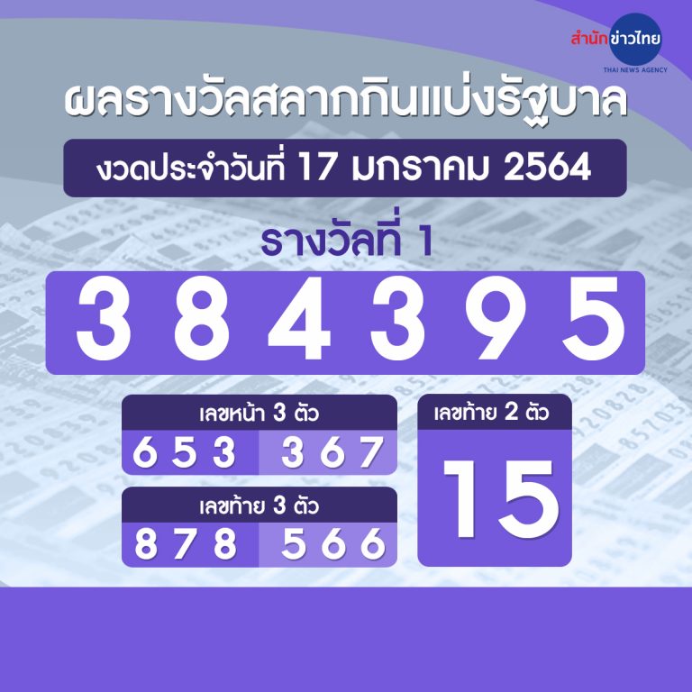 ผลรางวัลสลากกินแบ่งรัฐบาล งวดวันที่ 17 มกราคม 2564
